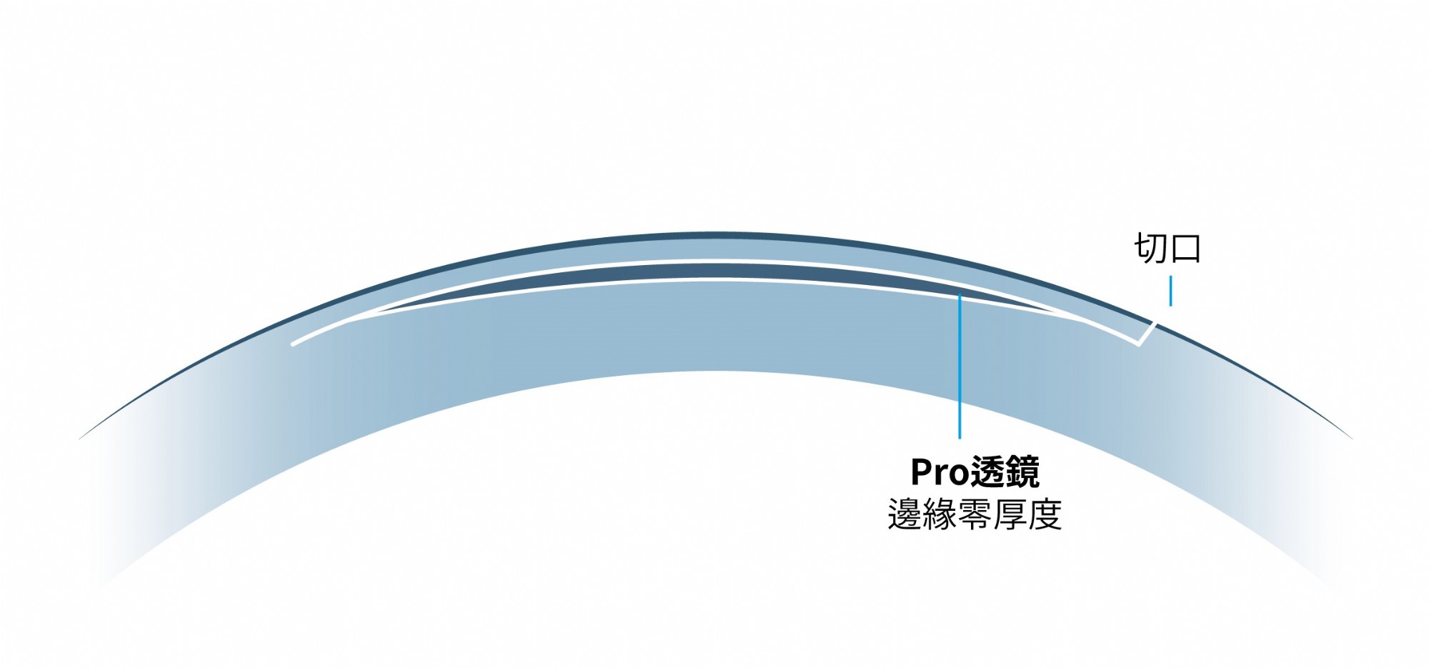 SMART 全飛秒 Pro 透鏡 銳角收邊,避免不必要的角膜厚度消耗 |