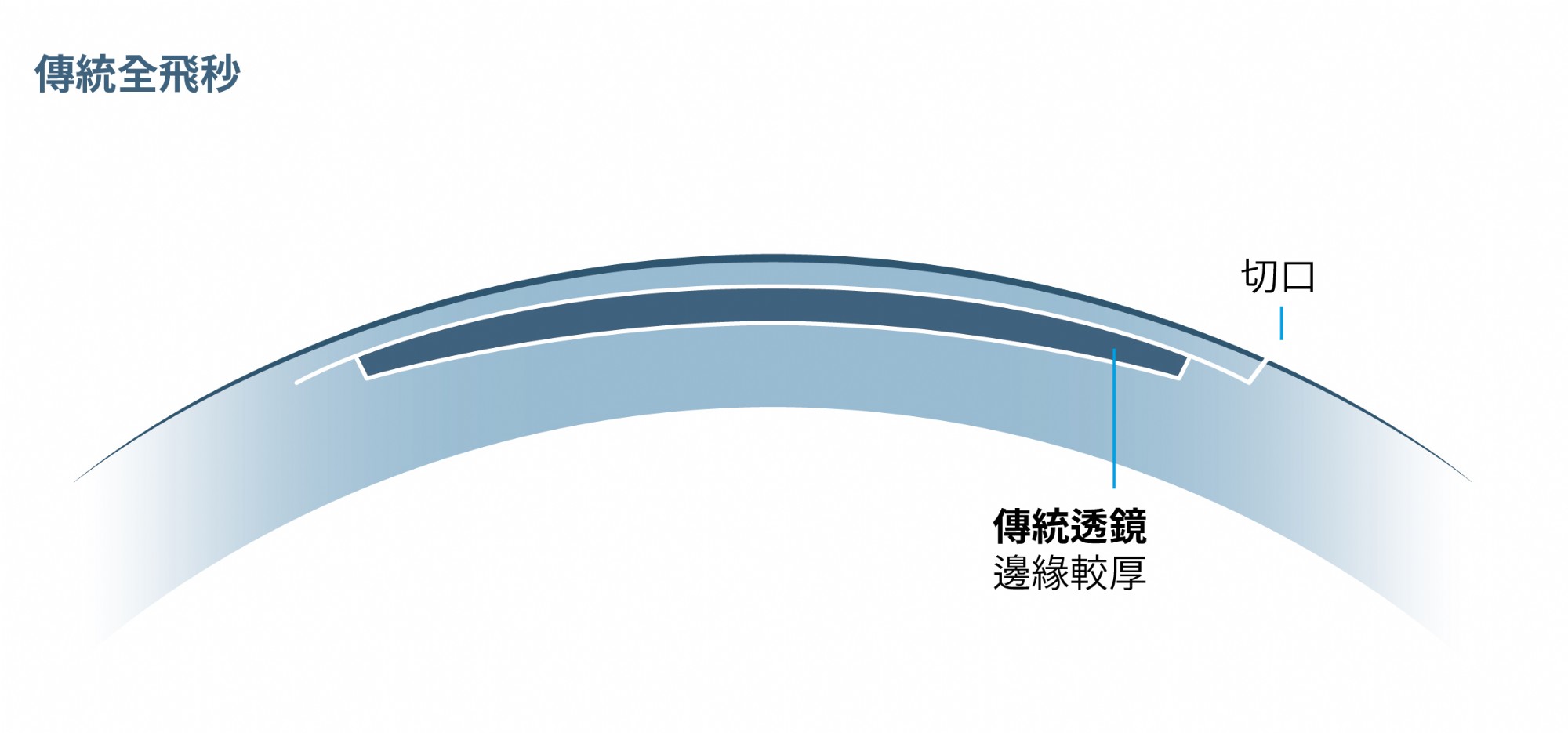 ✅ 超薄透鏡,透鏡邊緣銳角收邊,相比傳統全飛秒有厚度的邊緣更能節省角膜組織